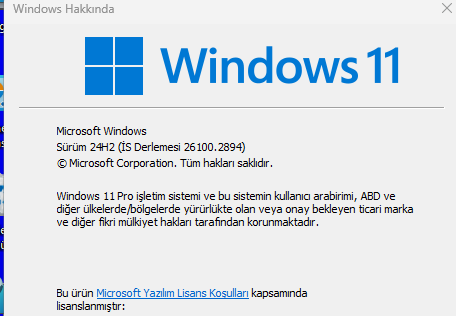 24H2'nin sonuncusu 26100.2894 Buradan kontrol edebilirsin (Latest Build kısmında): Windows 11 - release information Learn release information for Windows 11 releases learn.microsoft.com