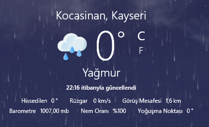 Sanırım Microsoft hava durumu uygulamasında biraz geri zekalılık var her taraf bembeyaz oldu bu hala yağmur diyor.