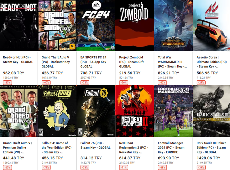 Oyunlar bazen kendi popüler satıcısının fiyatını gösteriyor üstüne tıklayıp alttaki panelde listeli satıcıları değiştirerek daha ucuzunu da bulabilirsiniz..
