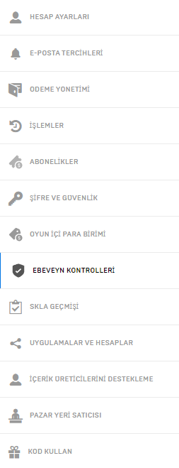 Bu kısımdan "Hesap" seçeneğine tıkladığında tarayıcıdan hesap ayarlarına yönlendiriyor, o kısımda "Ebeveyn Kontrolleri" ayarları var oraya göz attın mı?