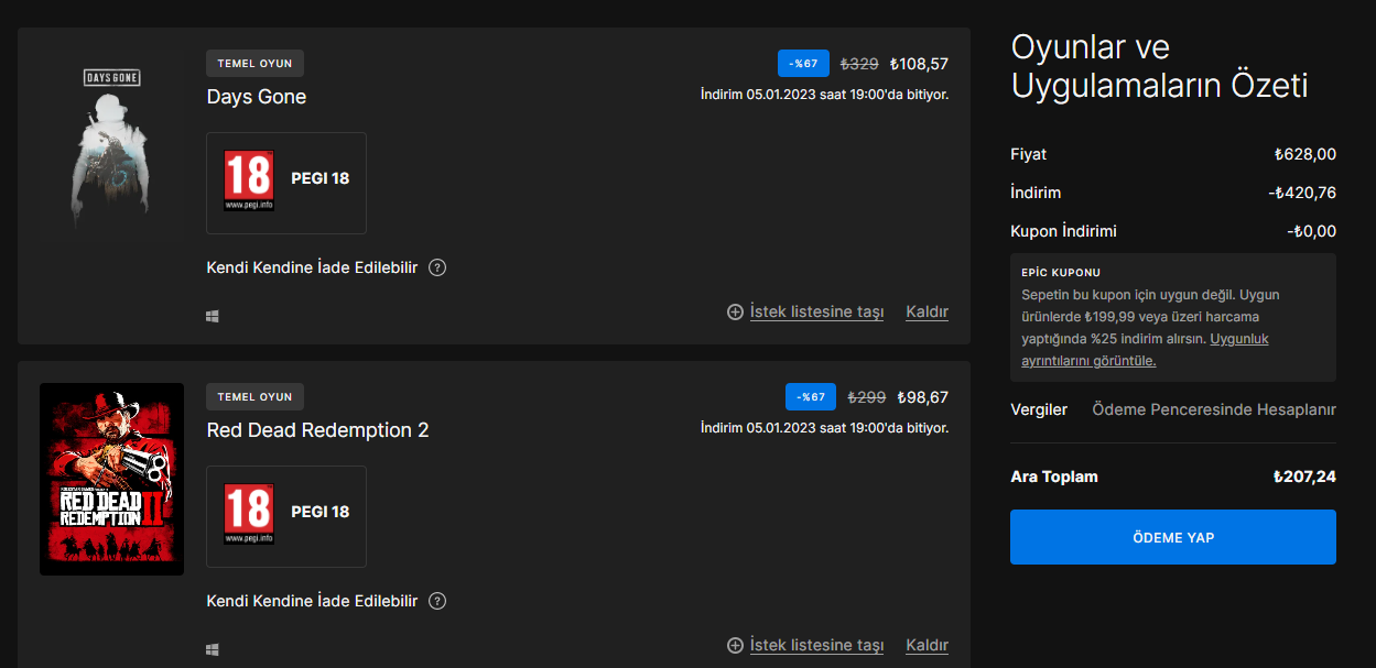 Red Dead Redemption ve Days Gone alacaktım sabah denediğimde kupon çalışıyordu fakat şimdi almaya çalıştığımda kupon uygulanmadığını gördüm ve karttan kuponsuz fiyatı çekmeye çalışıyor, bu sorunu nasıl çözebilirim?