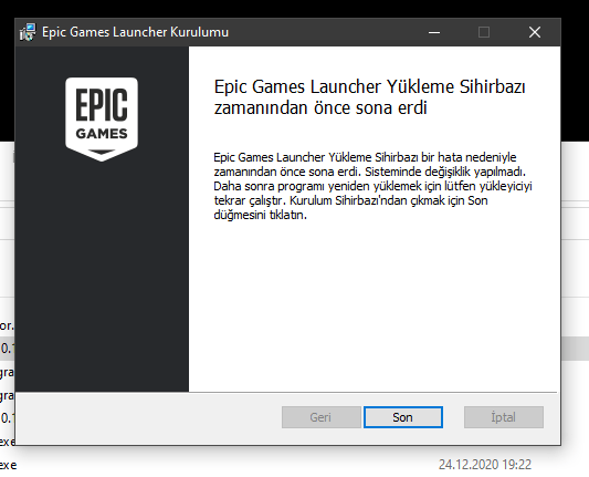 Merhaba, bilgisayarımda daha önce Epic Games Launcher kuruluydu ve kaldırmıştım. Tekrar kurmaya çalışıyorum ancak yükleyici kurulumu başarıyla tamamlayamıyor. Aşağıdaki resimlerdeki hataları alıyorum. Forumdaki diğer konulardaki çözümleri denedim ancak sonuç alamadım.