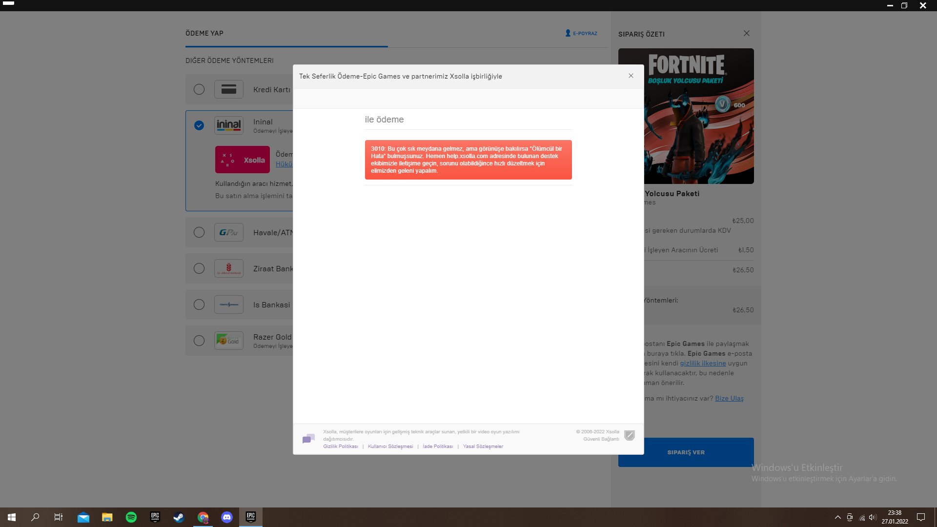 Epic Games'ten Fortnite'a para yatırcaktım tam ama şöyle bir ekran geldi. ne yapmam lazım?