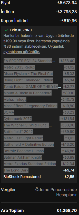 Cyberpunk almışken Phantom liberty DLC'si ile birlikte almanı öneririm kesinlikle, acayip uyguna geliyor bir daha bu fiyata bulunmaz. Hatta Steam'da olmasına rağmen DLC'li sürümü Epic'ten tekrar alacağım ben sanırım.