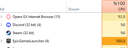 Hocalar burada gördüğünüz gibi Epic Games işlemcime kötü anlar yaşatıyor. Arkada çalışırken bir şey yok ama sağ tıklayıp kütüphane dediğim anda işlemci nalları dikiyor PC feci yavaşlıyor. Görev Yöneticisi bile zor açılıyor. Bunun sebebi nedir? Dün format attım bilgisayara formattan önce böyle değildi. İşlemci i5 3570.