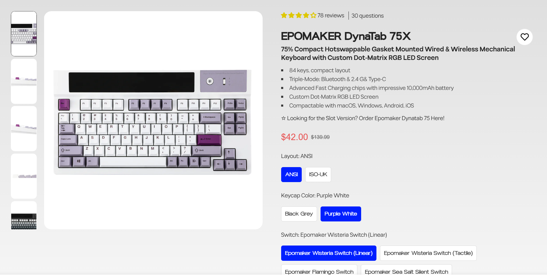 An Evolution in Customization Experience Meet the Epomaker DynaTab 75X, a solid hot swappable mechanical keyboard that is sleek, creative, and feature-loaded. The core design concept of the DynaTab is for personalization and customization. Designed with a futuristic 75% compact form factor, the...