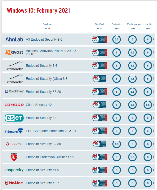 Emin değilsen AV compare var oradan resmi tablo atayım.