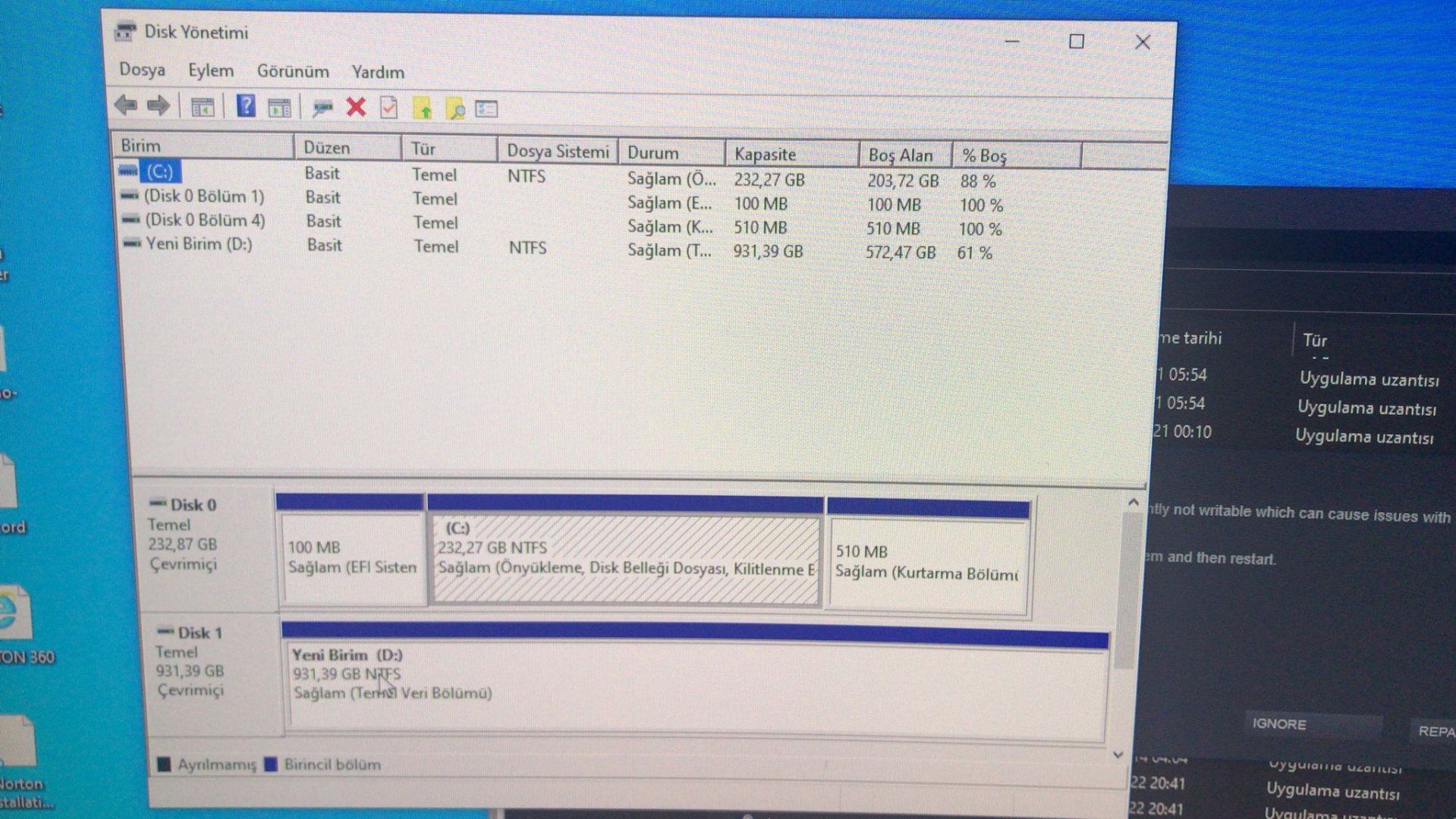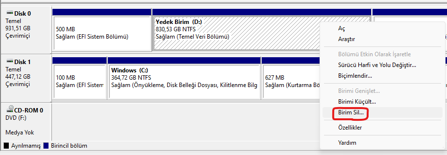 C'yi silip oraya Windows'u kurduysanız temiz kurulum yapmışsınızdır. D'yi silmek için Disk Yönetimine girip fotoğrafını atın demiştim.