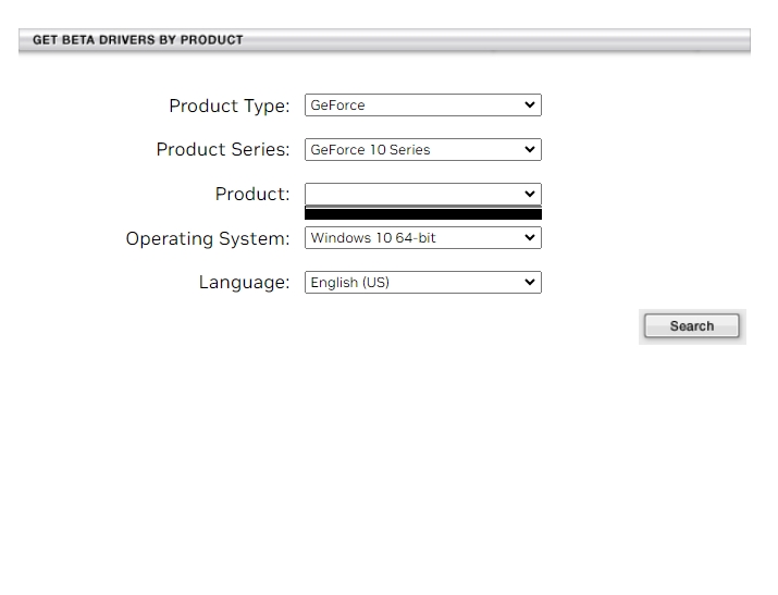 • "Beta and older drivers" bölümüne ulaşmak için sayfanın alt kısmına gidin. Buradan eski sürücüleri listeleyebilir ve aradığınız GTX 1050 Ti için sürüm tarihine göre filtreleme yapabilirsiniz.