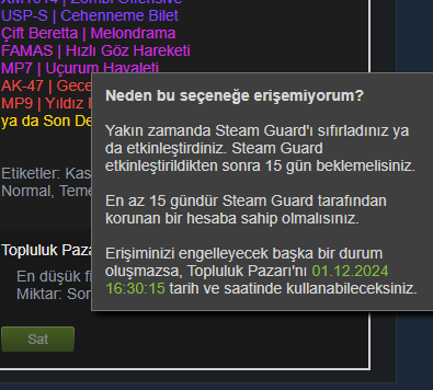 Çözüldü Steam Eşyası satılamıyor
