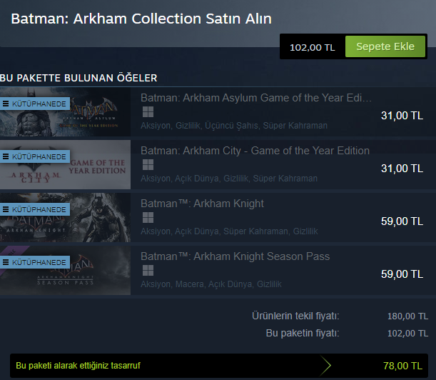 Mad Max ve Batman Arkham Asylum Steam de çok çok daha uygun fiyatlara geliyor başka böyle oyunlarda var mı bilmiyorum. Bu oyunlar zamlansa bile indirimde bu fiyatlara düşer yine.