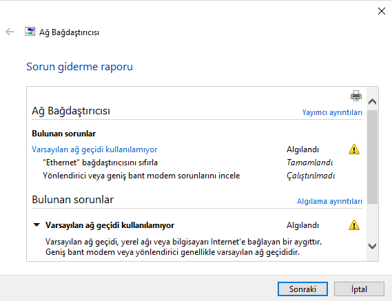 Arkadaşlar masaüstü bilgisayar kullanıyorum arada bir kablolu internet bağlantısı kesiliyor. Resim olarak da şöyle bir sorun çıkıyor sorunu nasıl çözebilirim detaylı.