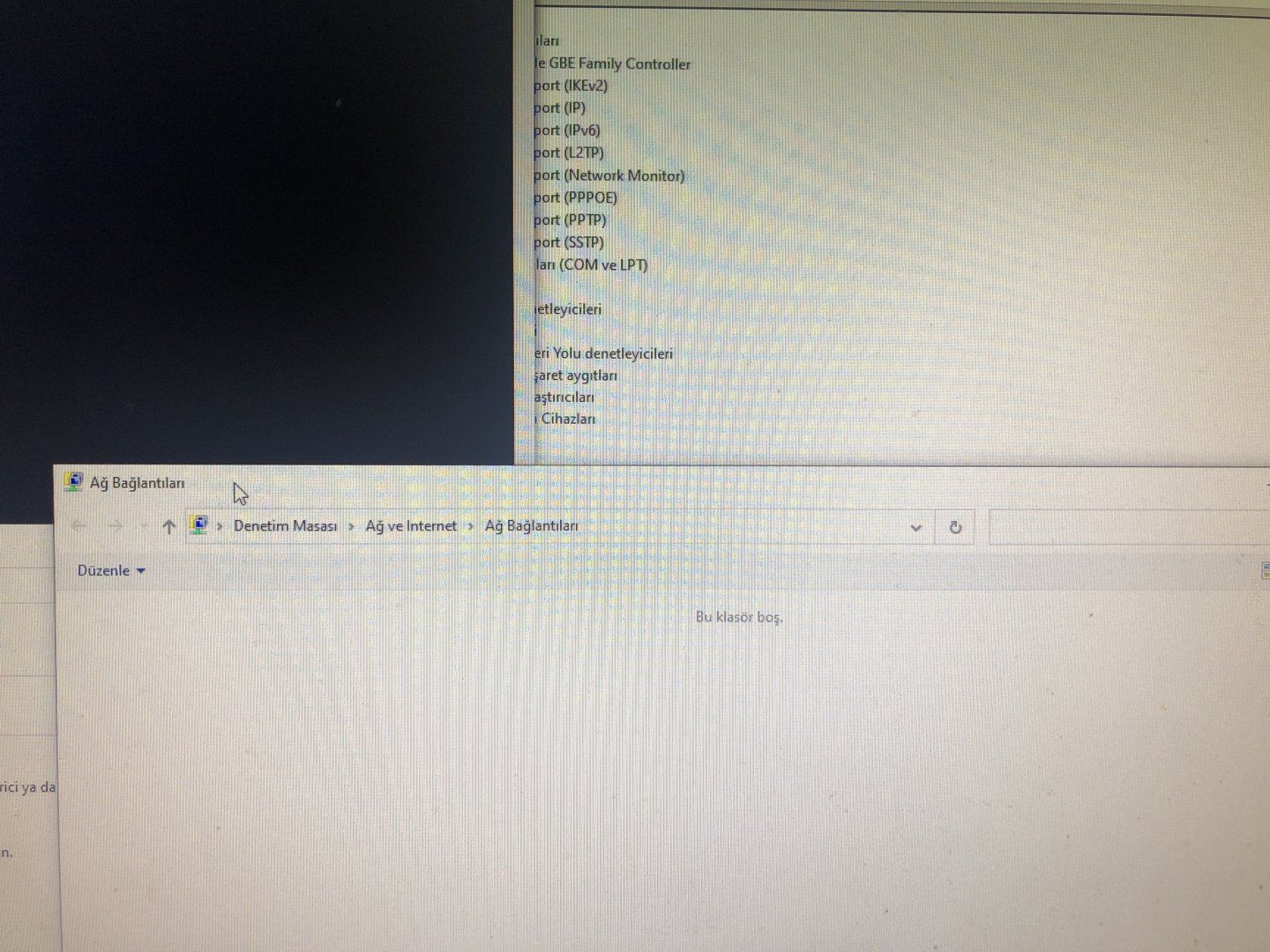 Ethernet gözükmüyor