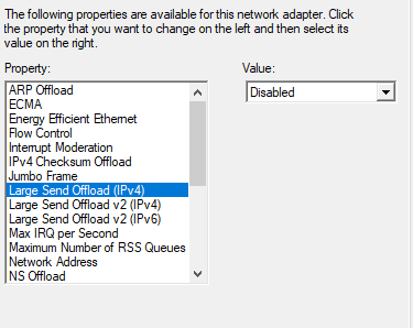 Merhaba sorunu çözdüm. Aynı sorunu yaşayan arkadaşlar için çözümü anlatıyorum. Aygıt yöneticisinde ağ adaptörlerine girince resimde görüldüğü gibi large send offload (IPv4) ve large send offload V2 (IPv4) gözüküyor bunları disable yapınca çözülüyor. Anladığım kadarıyla bu ayar CPU'ya yük binmesini önlüyormuş. Hatalıysam düzeltirseniz sevinirim. İyi günler dilerim.