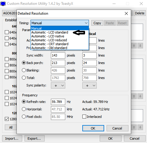 - Sonra açılan menüden Timing kısmına tıklayıp Automatic - LCD Standard kısmına tıklıyoruz.