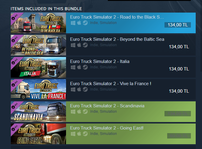 ETS 2 map booster önümüzdeki Steam yaz indiriminde kaç TL'ye düşer? Sanırım son güncellemede 184 olmuş, bundan fazla olma olasılığı var mıdır? Ve bu bende olmayan 4 DLC tahminen ne kadara denk gelir? Teşekkür ederim.