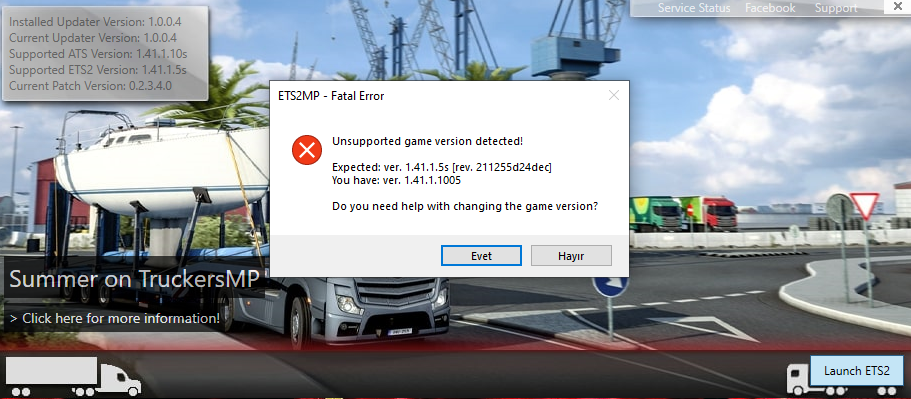 Çözüldü ETS2MP "Fatal Error: Unsupported game version detected" hatası