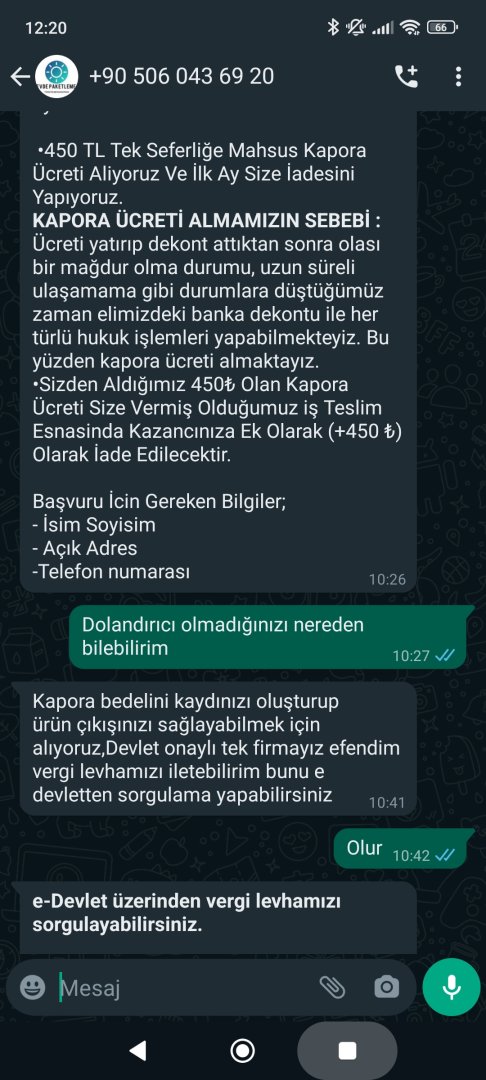 Merhaba. Ne kadar da böyle şeylere pek inanmasamda sürekli aynı sayfa karşıma çıktığı için ve yorumlarda bayağı olumlu şeyler gördüğüm için sormak istedim. Gerçekten böyle paketleme karşılığı para verenler var mı? Bir insan neden bir paketleme işine 12K verir? Merak edip sordum devlet onaylı vs dediler. Kapora olarak 450 alıyorlar. 10 kişiden para alıp dolandırsalar 4500 yapar. 10 kişiden 2-3 kişi şikayet etse ve soruşturma açılsa aldıkları paranın 10 katını ödeyecekken neden böyle bir dolandırma şeklinde bulunuyorlar? Aklıma tek bir seçenek olarak insanların aman 450'den ne olacak demesi geliyor.