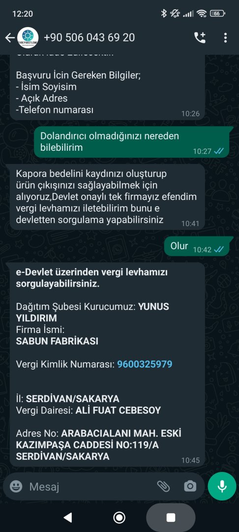 Sabun fabrikası ismini gördükten sonra halen bu olayın gerçek olabileceğini sorgulayan insan ya sadece okuma yazma biliyordur ya da dolandırılmayı gerçekten hak ediyordur. Kusura bakmayın hocam ancak durum böyle yani. Siz herhangi bir işte çalışmaya başlayan kişinin çalıştığı iş yerine kapora ödediğini duydunuz mu? Hayır şu mevzular 20 yıldır şu memlekette var hadi benim 10 sene önce 75 yaşında olan dedem kandı da internet kullanabilen insanın acaba diye sorgulayabiliyor olması bile beni şaşırtıyor.