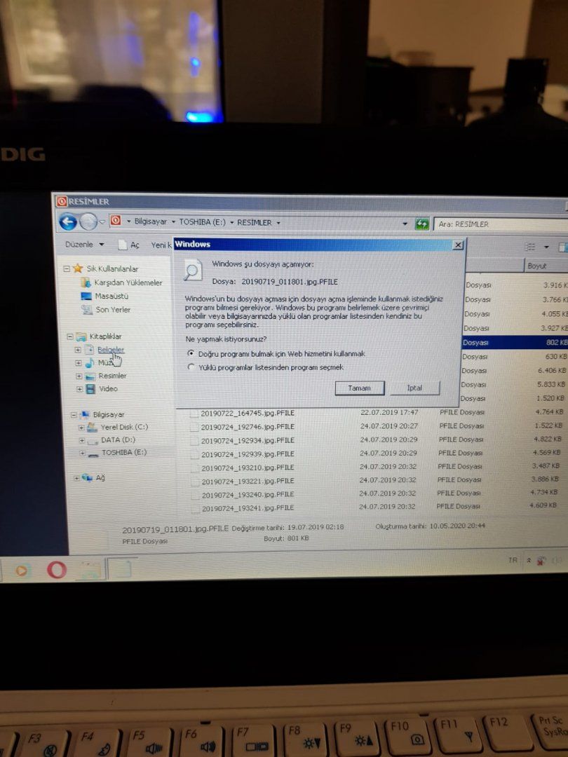 Başka bir cihaza taktım. Burada da fotoğrafları PFILE olarak gösteriyor ve resimdeki gibi hata veriyor.