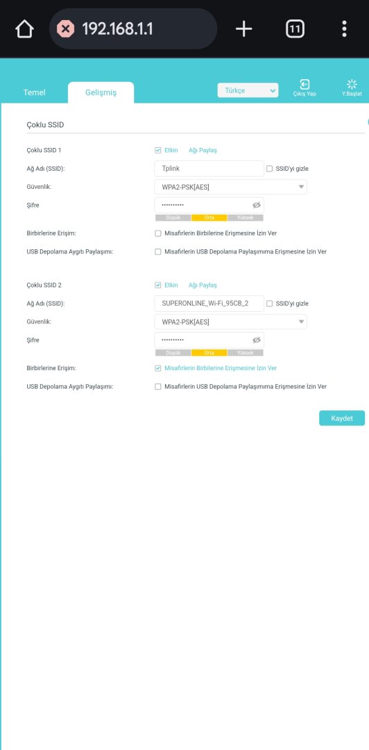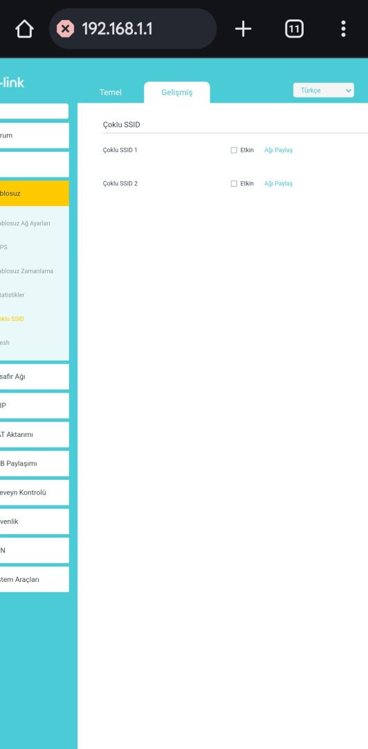 Dostum Wi-Fi etkin tikini kaldırınca ne olacak? Yanlış anlama ciddi soruyorum. Menünün sol tarafında çoklu SSID seçeneği var büyük ihtimal oradan ayrı isim verecek ikisine.