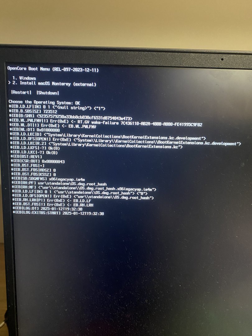Excalibur G870 laptopta Hackintosh Monterey kernel panic hatası