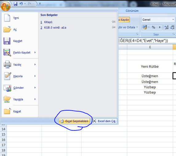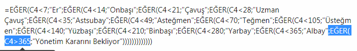 hocam olmadı sanırım istediğim. Şöyle aktarayım size bugün üyenin 6. günü er rütbesinde yarın 7.güne ulaştığında onbaşı olacak. Yarın oldu 7 günlük üye oldu ve rütbesinde onbaşı yazdı. Şimdi rütbesi değişti ya rütbe değişikliği bölümünde hayır yazmalı. Çünkü evet rütbesi değişti ama yönetici diğer programdan üyenin rütbesini göstermedi. Yani istediğim hocam üye yeni bir rütbeye eriştiğinde rütbe değişikliği bölümünde hayır yazmasıHayır ayrı ayrı yazmaya gerek yok. Direk E4 hücresinin içine formülü yazarsan istediğini yapmış olacak.