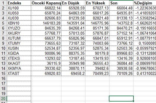 Sadece endesk yazanın ve değişim yazanın altındakilerle grafik oluşturacağım bunu nasıl yaparım?