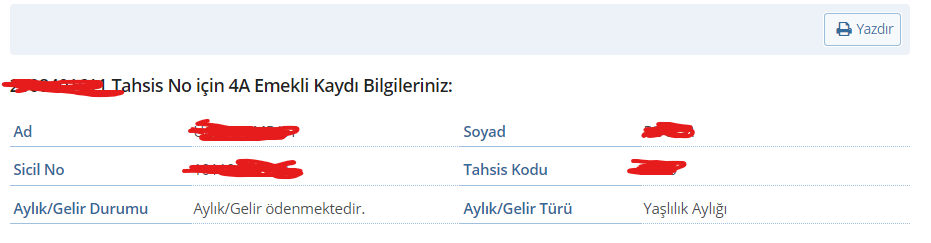 Hocam Dys'ye baktım henüz bir şey yok. 4A emeklilik bilgisinde bir yere girdiğimizde gelir ödeniyor vs. çıktı.