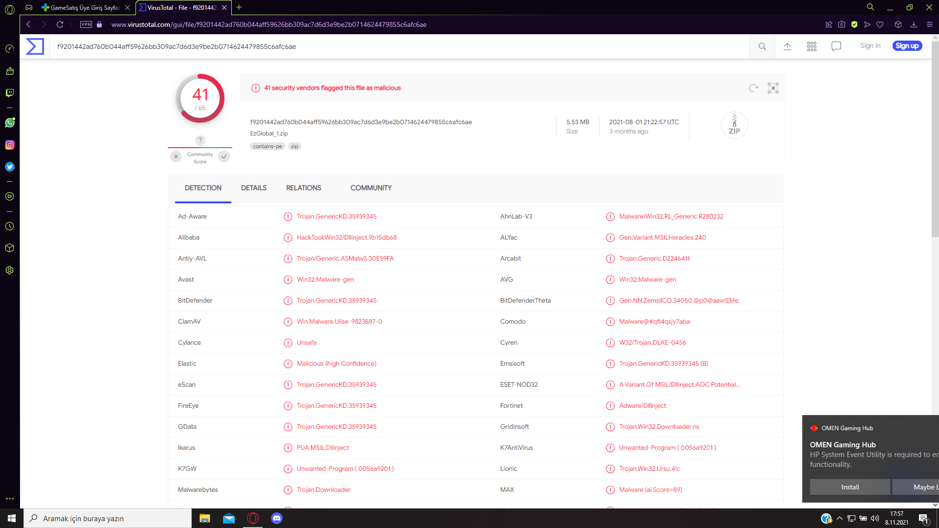 Selamünaleyküm arkadaşlar ben bilgisayarıma ne crackli oyun yüklerim ne bir şey indiririm abim geçen bilgisyara CS:GO hile satın alıp indirmiş ezglobal mı nedir? İşte VirusTotal'de tarama yaptım program virüslü çıktı. Ne yapayım? Sizce bilgisayara virüs girmiş midir? Ne yapmam lazım?