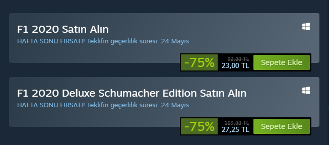 F1 2020 oyununu almayı düşünüyorum. Ancak Steam'de 92 lira fiyatı biraz pahalı gibi. Sizce yakın bir zamanda indirime girer mi? Veya daha uygun satılan bir yer var mıdır?