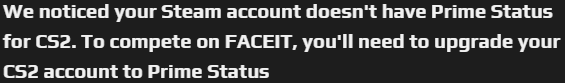 Hesabınızı seçkine yükseltmeniz gerektiğini söylüyor. Seçkin almanız gerek.Oyunda 81 saatim var ve bu hatayı alıyorum. Bildiğim kar-darıyla FACEIT için seçkin gerekmiyor. Valorant'a bağlamayı denedim bağlandı sadece CS2'ye bağlanamıyorum, ne yapmam lazım?