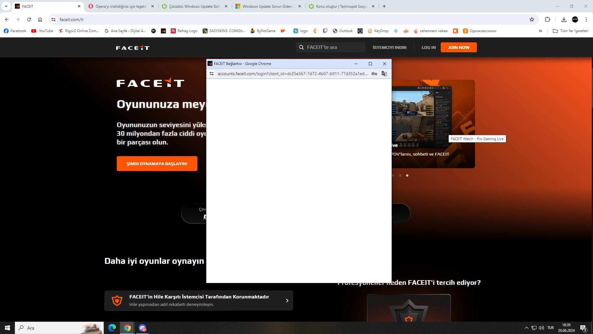Merhaba, Google tarayıcısı üzerinden FACEIT'te giriş yapamıyorum. ID ve şifreyi girince beyaz bir Google sayfası açılıyor ve o şekilde kalıyor başka tarayıcıdan giriş yapmayı denedim girdi ama Google üzerinden giriş yapmam gerek çünkü FACEIT uzantılar var.