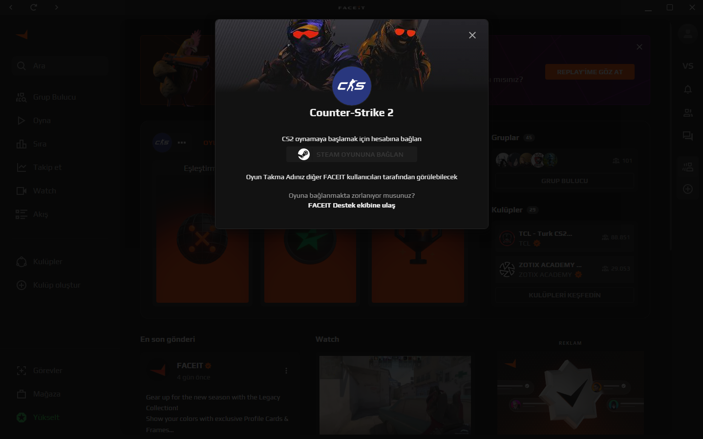 FACEIT Steam'e bağlanmıyor