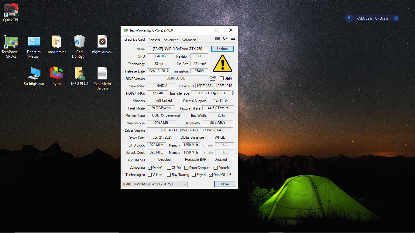 NVIDIA sitesinden driveri indirdim sorun yaşamadım ama GPU Z yanlış olabilir mi?