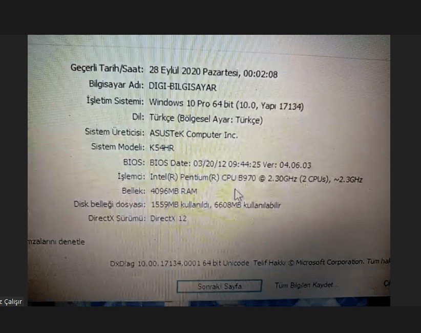 Bilgisayarınızın özelliklerini yazar mısınız ?
