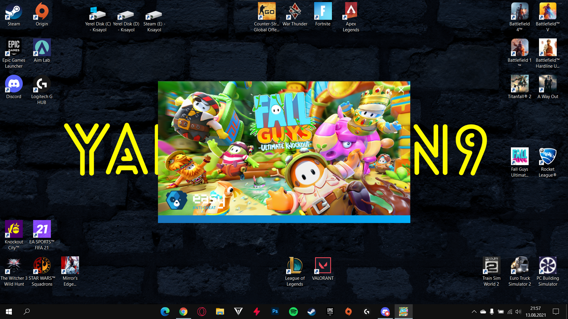 Fall Guys açılmıyor. Yeniden başlattım olmadı. Easy Anti-Cheat denedim, olmadı. Dosyaları doğruladım olmadı. Şu ekranda kalıyor.