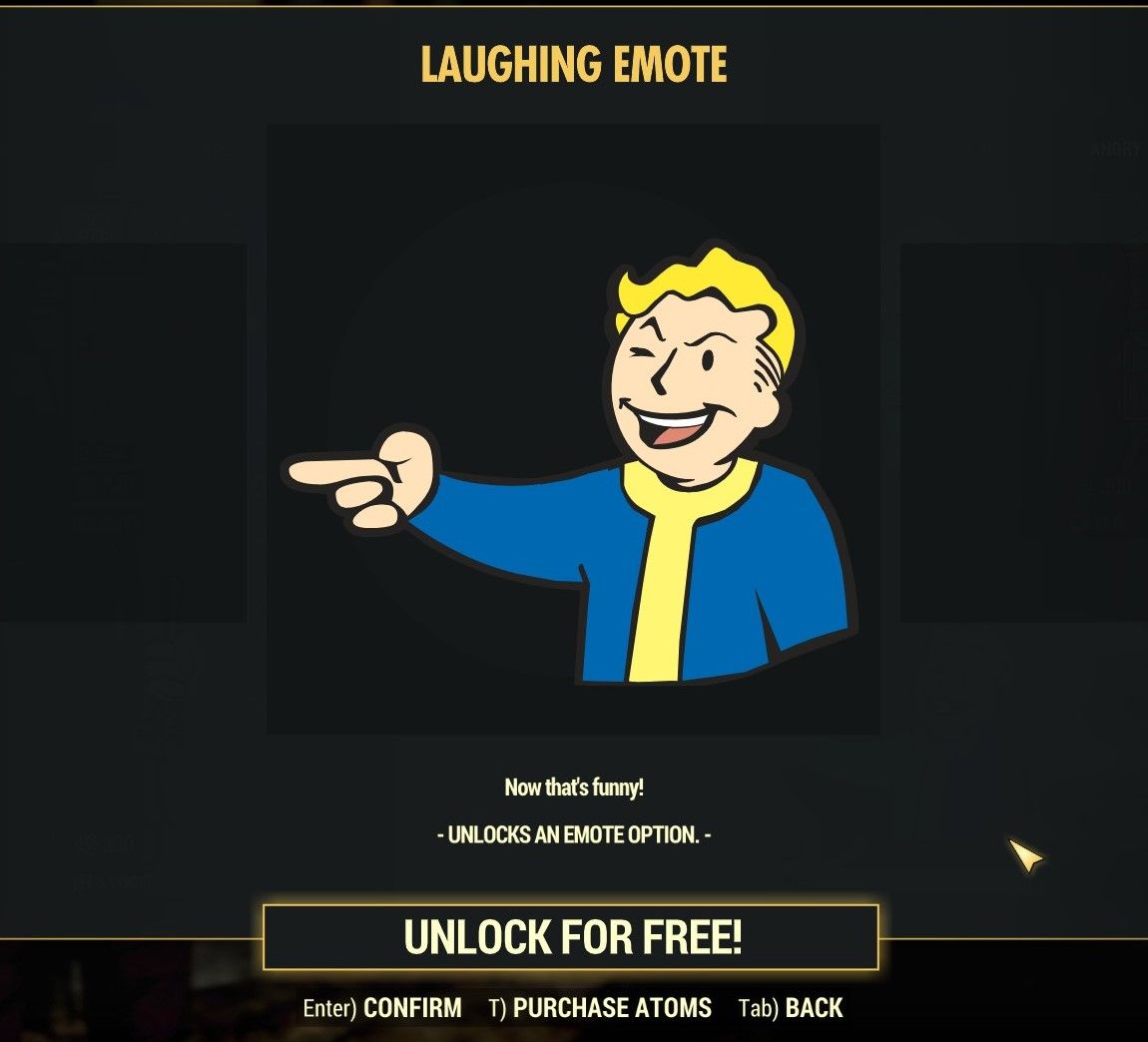 Fallout 76'da 1 Nisan sebebiyle gülme emojisi tüm oyunculara ücretsiz.
