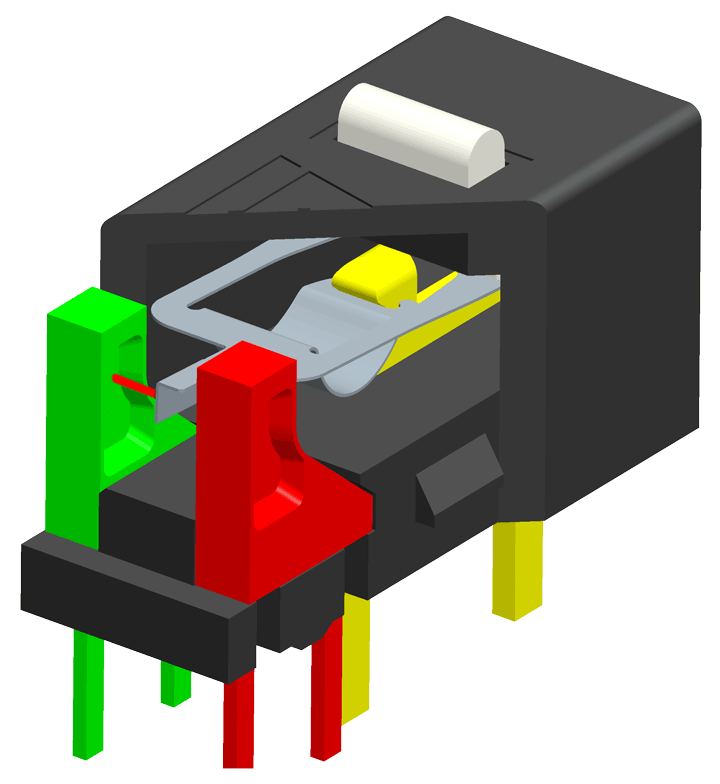Tam olarak mouse switch bulamadım ama mantık neredeyse aynı, 2 metal parça fiziksel olarak birbirine değerek temas oluşturuyor ve ortaya çıkan mikro akım fareye tık olarak yansıyor.