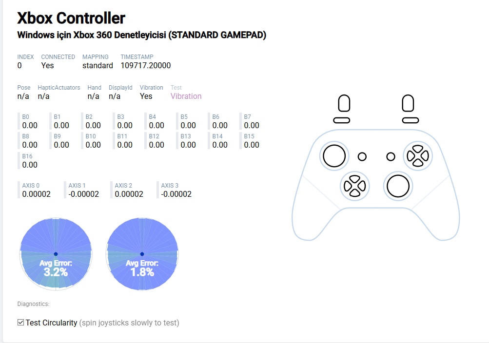 7-8 aydır kullandığım Gamepad'in ölü bölgesi böyle. İlk aldığım da 0.5 idi sağ ve sol analog. Şimdi biraz artmış. Gamepadde hall efect de var. Biraz artmış, pek anlamam. Kötü mü iyi mi?