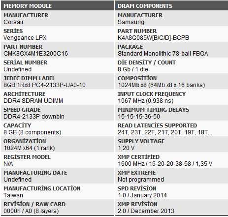 LPX'lerden karışık geliyor. 4.31 Samsung B-Die fakat muhtemelen bad bin. Uyumlu olma ihtimalleri düşük, hele Micron falan gelirse çorba olur.