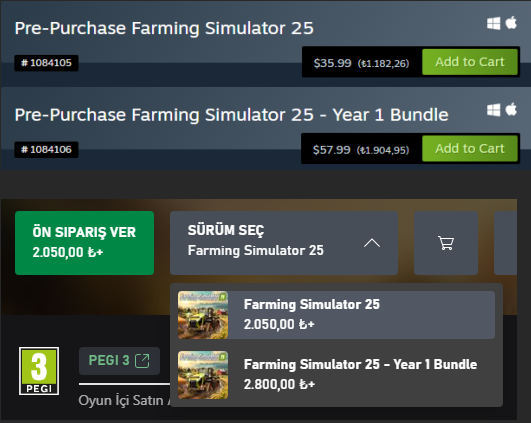 Kaçan kovanlanır doğruymuş demek kiBende bir kararsız kaldım sonra 1 year zamlanınca öbürü zamlanmadan alayım dedim. Sonra Steam yaz indirimlerine bakayım beğenmezsez bir şey alarım dedim azıcık bekledim 1750 olmuş istesem de alamam artık ama modlarla FS 22'yi FS 25 yaparız sıkıntı yok.