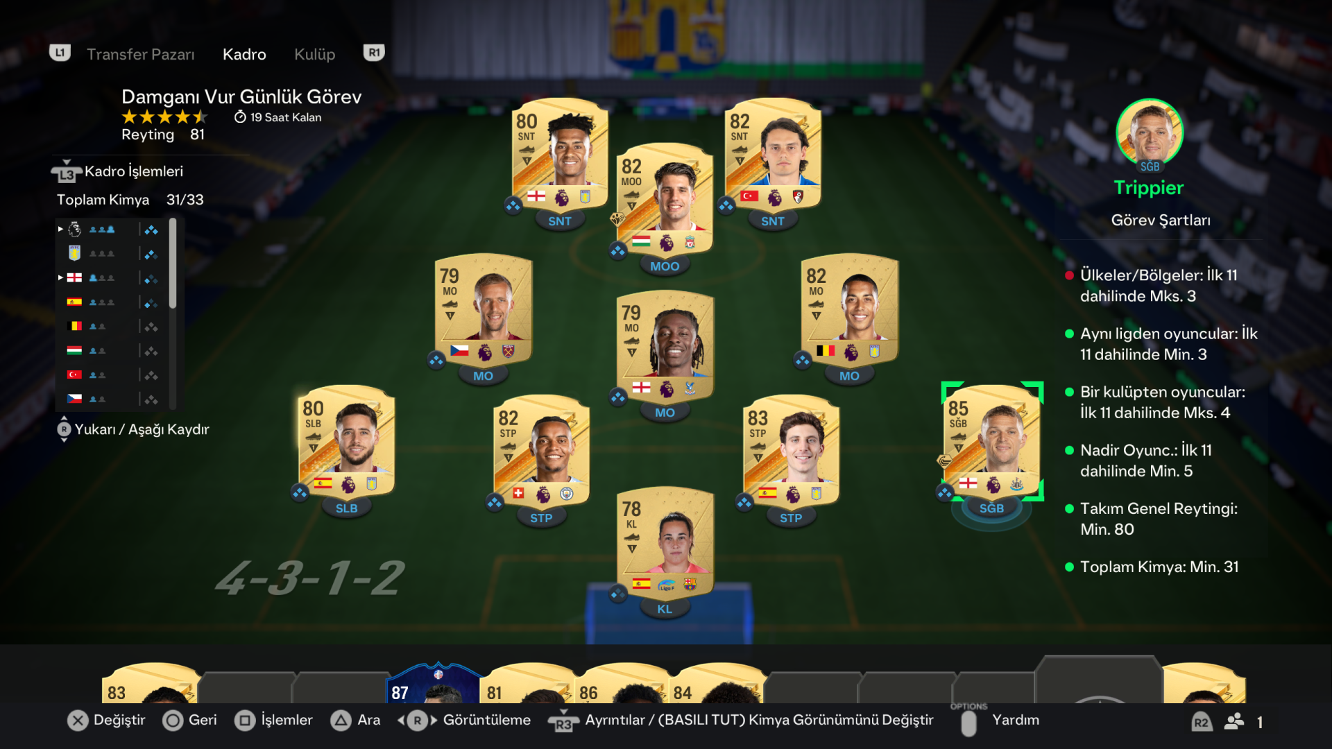 Hmm anladım hocam çok teşekkürler Bu baya zorlayacak gibi kimya tutmuyor bu seferMaksimum 3 farklı ülkeden oyuncu koyabilirsin 4 koyamazsın.
