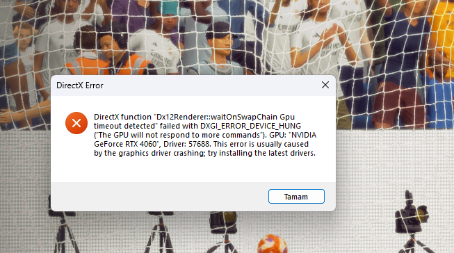 Selamlar. FC 25 oynarken bu hatayı alıyorum. Mesela FC oynarken Discord'a giriyorum ya da başka uygulamaya bu hatayı veriyor. Ne yapmam lazım? (önceki konuyu güncellemeyi bilmiyorum yenisini açtım kusura bakmayın)