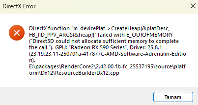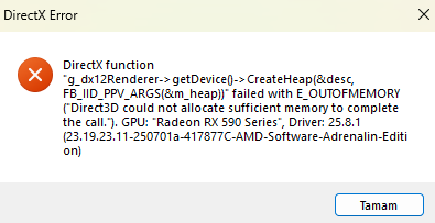 Yaklaşık 1 haftadır FC 26'ya girdiğimde DirectX hatası alıyorum. Hatasının içeriğinde depolama yetersizliği hakkında bilgi var. Hatayı çözmemde yardımcı olur musunuz? 2 farklı hata verdi girişlerimde.