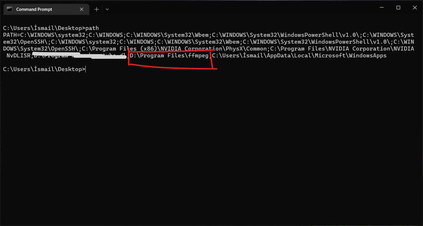 Şu da Powershell'deki Path'a eklenen şeyleri sorgulama komutunun çıktısı: