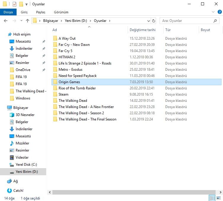 Demek istediğim buydu. Dosya dizini direkt D'ye bağlı.D diskine kendisi de kurabilir, orijinal oyunun C de olması kuralı yok ki
