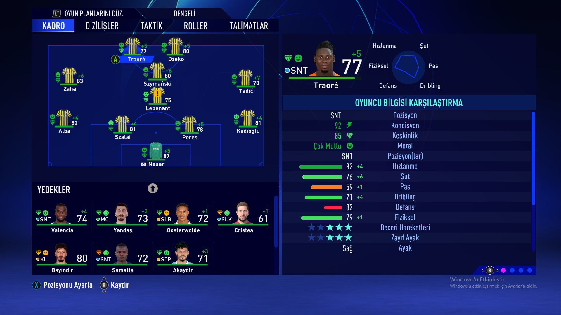 Hocam bu şekilde yapınca traore boşta kalıyor nerede oynatmalıyım sizce.