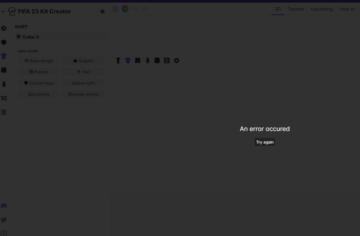 FIFA 23 kit creator sitesinden forma yapmak istiyorum. Ama aşağıda verdiğim resimdeki hatayı alıyorum bunu nasıl çözebilirim? Ya da başka hangi siteden yapabilirim?