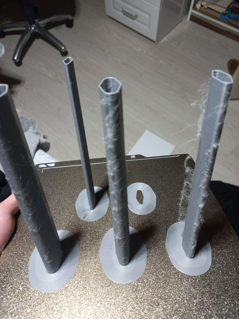 Baskı öncesi bir şey sürmüyorum, yatak sıcaklığı 65 ve dokulu pei plaka kullanıyorum. İpliklenme var ama bu kadar değil.